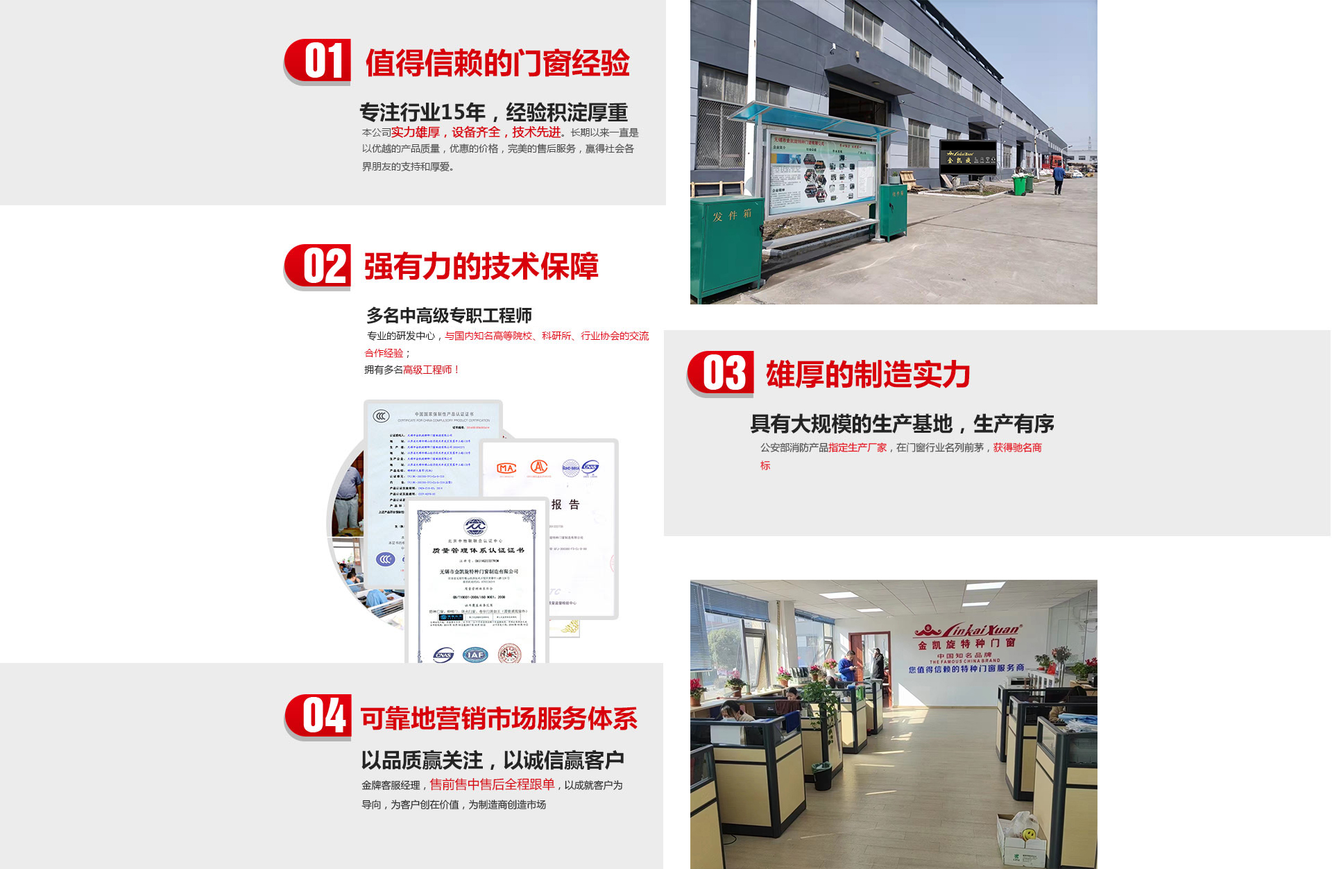 產(chǎn)品涵蓋:防爆門窗,泄爆門窗,金庫門,防火門窗,隔音門,超大鋼門,折疊鋼門,不銹鋼門,各種卷簾門,鋁藝門,鋁藝圍欄及豪華伸縮門。
